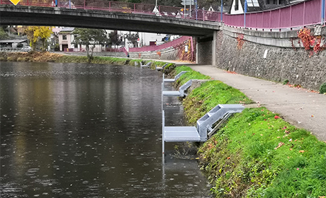Nach den Vorgaben des Wasserstraßen- und Schifffahrtsamtes bietet das Unternehmen Schneider Stahlkonstruktionen GmbH in Hardt im Westerwald speziell für die Lahn solide, wartungsfreie Feststege aus verzinkten Stahlelementen. Der Konstrukteur, Frank Stiller, entwickelte das raffinierte Baukastensystem für Anlegestege, um den individuellen Anforderungen an den Ufern der Lahn gerecht zu werden.