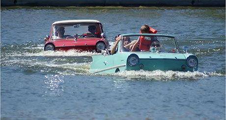 Mitfahrgelegenheit in einem historischen Schwimmauto.